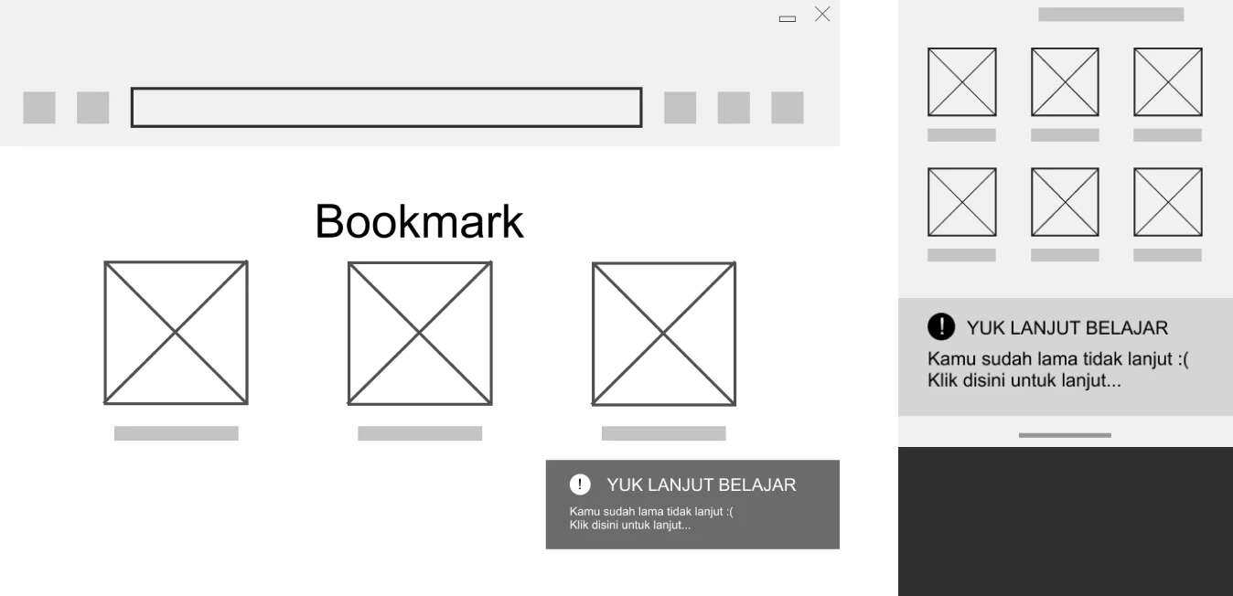 The interface above is the display on the website when in user learning mode. While the display below is a notification display to remind the user to continue the last learning. This is to fulfill the user's need for a reminder.